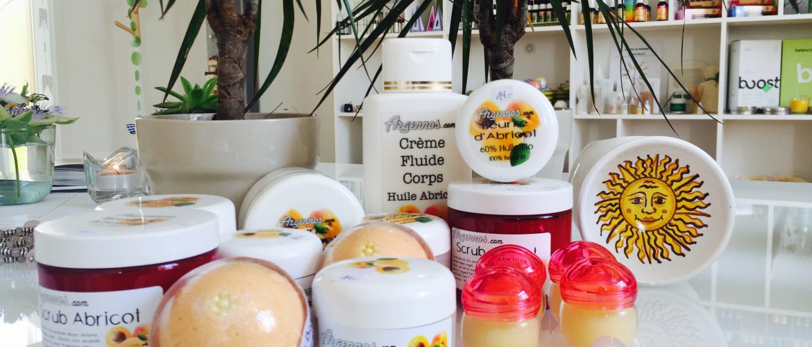 Oggi ero ispirata all’albicocca, così vi propongo una linea creata con l’olio di questo frutto che proprio in questo peridio dell’anno abbiamo il piacere di gustare e grazie a questi prodotti anche la nostra pelle avrà lo stesso piacere: crema corpo, burro corpo, scrub viso e corpo, crema mani, bath bombs, burrocacao.