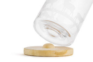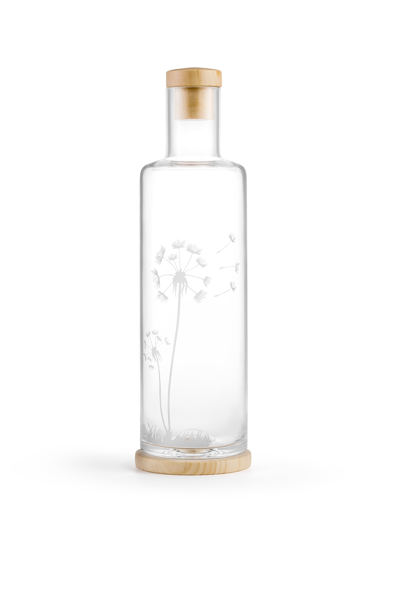 Bottiglia dal design elegante con coperchio in pino cembro e sottobicchiere in pino cembro abbinato (salvagoccia). I motivi sono basati su ritagli di carta svizzera originali.