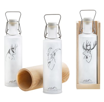 Il miglior lavoro manuale, eseguito individualmente, rende ogni bottiglia un’opera d’arte unica e di piccole dimensioni. La purezza dell’artigianato è evidente nei delicati disegni degli animali di montagna, che vengono pazientemente applicati a mano. Un must assoluto per gli amanti della montagna e del mondo alpino!